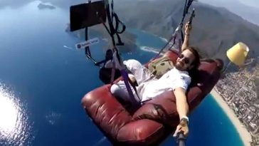 in Diversión, Noticias¡Adrenalina al 100%! Instructor de parapente voló arriba de un sillon sin ninguna seguridad